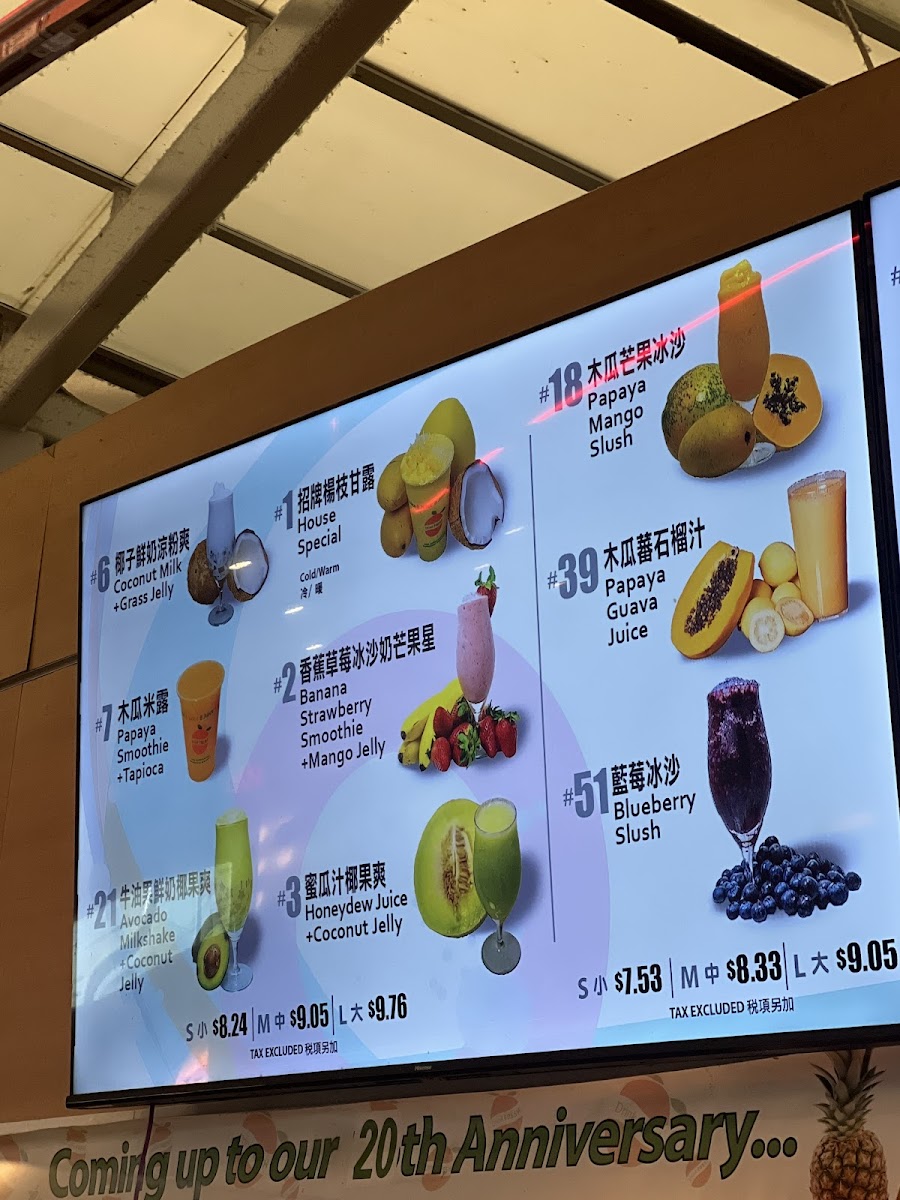 Papaya, milk, tapioca toppings. Sweet and refreshing.